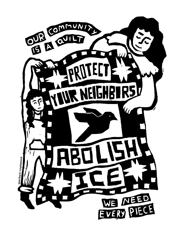 Artwork from the Justseeds Artists’ Cooperative series of images opposing ICE.